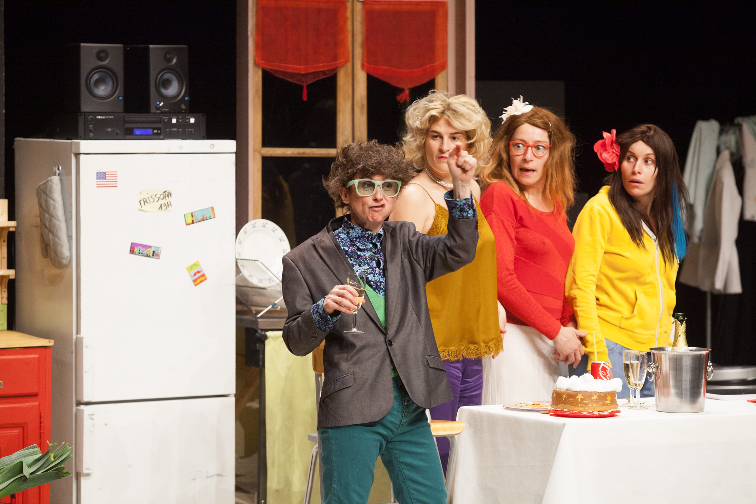Interprétation : Valérie Larroque, Adeline Benamara, Irène Chauve, Laure Seguette & Frédérique Moreau de Bellaing / Direction : Laure Seguette & Agnès Larroque / Adaptation d’après Molière d’Agnès Larroque / Mise en scène : Agnès Larroque / Décors : Benjamin Moreau assisté d’Audrey Gonod / Lumières : Justine Nahon / Régie plateau : Pierre Duvillier / Perruques : Pascal Jehan