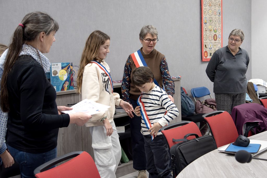 Après s’être présentés à tour de rôle, les jeunes élus ont partagé quelques projets qui leur tiennent particulièrement à cœur, illustrant déjà leur motivation et leur envie de s’impliquer dans la vie locale. Ils ont ensuite reçu, des mains des élus sortants, leur écharpe tricolore  ainsi qu’un diplôme, symboles de leur engagement citoyen dans cette aventure collective.