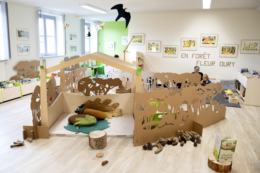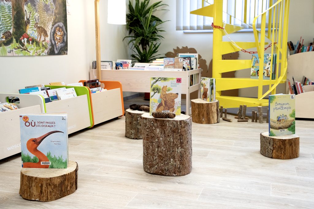 Entre rondins de bois, pommes de pin, feuillages, mobiles d’oiseaux, illustrations encadrées et ouvrages colorés, les jeunes lecteurs plongeront dans une atmosphère douce et imaginaire. Petits et grands sont invités à s’installer dans un environnement confortable et cocooning, feuilleter les albums et rêver au milieu d’une forêt… à l’intérieur même de la médiathèque.