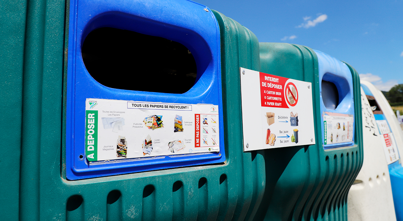 Les points propres recueillent le verre et le papier en vue de leur recyclage. Ces déchets ne doivent jamais être déposés dans les bacs gris ou jaune.