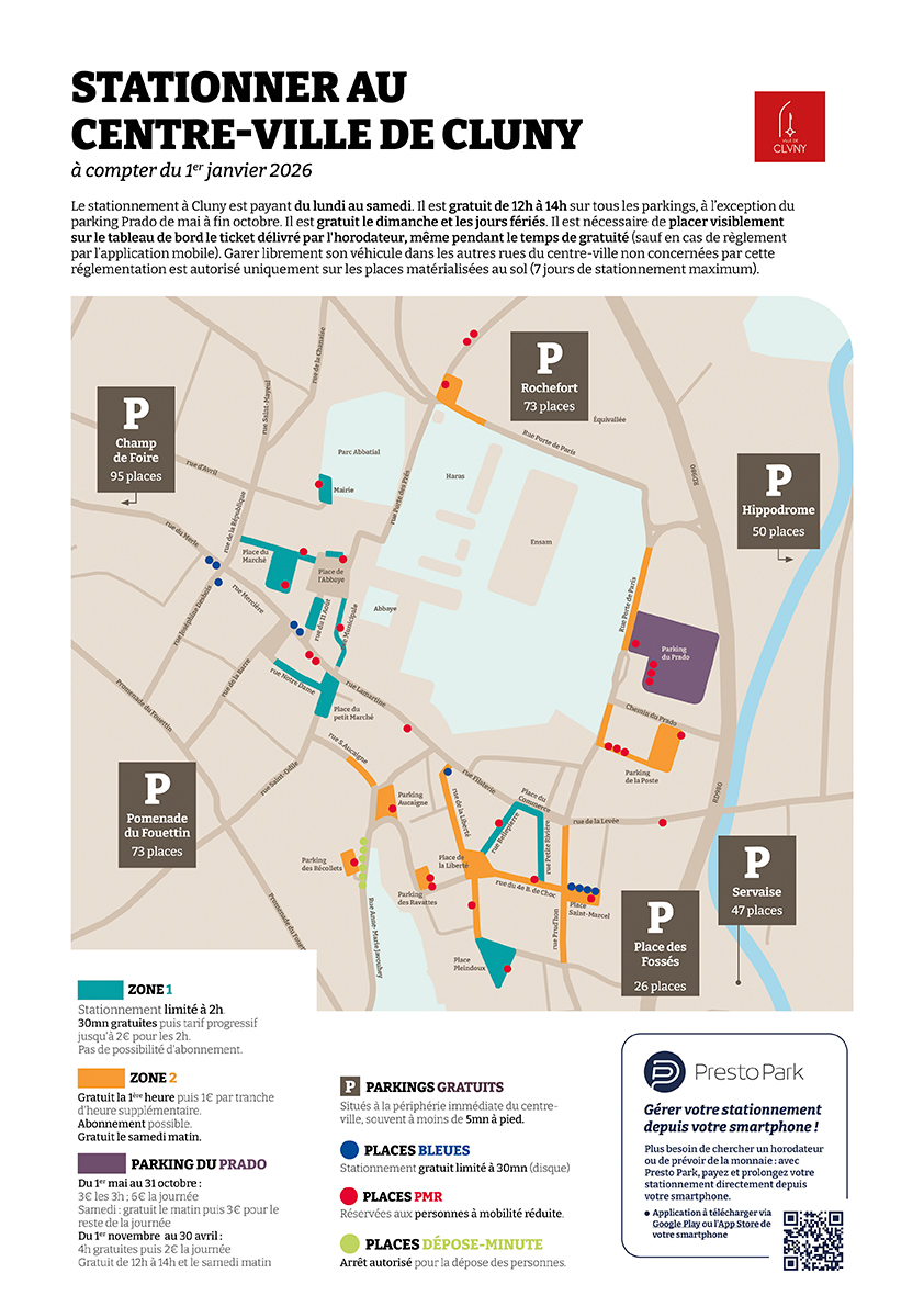 À deux pas du centre-ville, le parking du Prado est le lieu de stationnement idéal pour accéder aux commerces ou visiter Cluny.